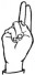 На ћирилици написано ЛЕОНИДА КНЕЖЕВИЋ састоји се из 15 слова [?]. Исписано ћириличном једноручном азбуком за глувонеме: